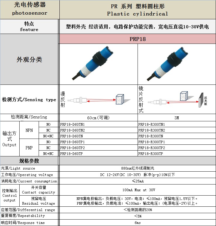 PR系列 圓柱形 光電開關(guān)